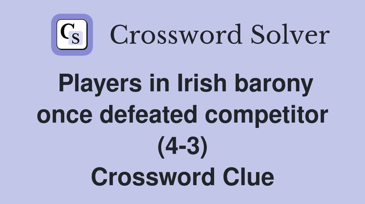 Players in Irish barony once defeated competitor (4 3) Crossword Clue