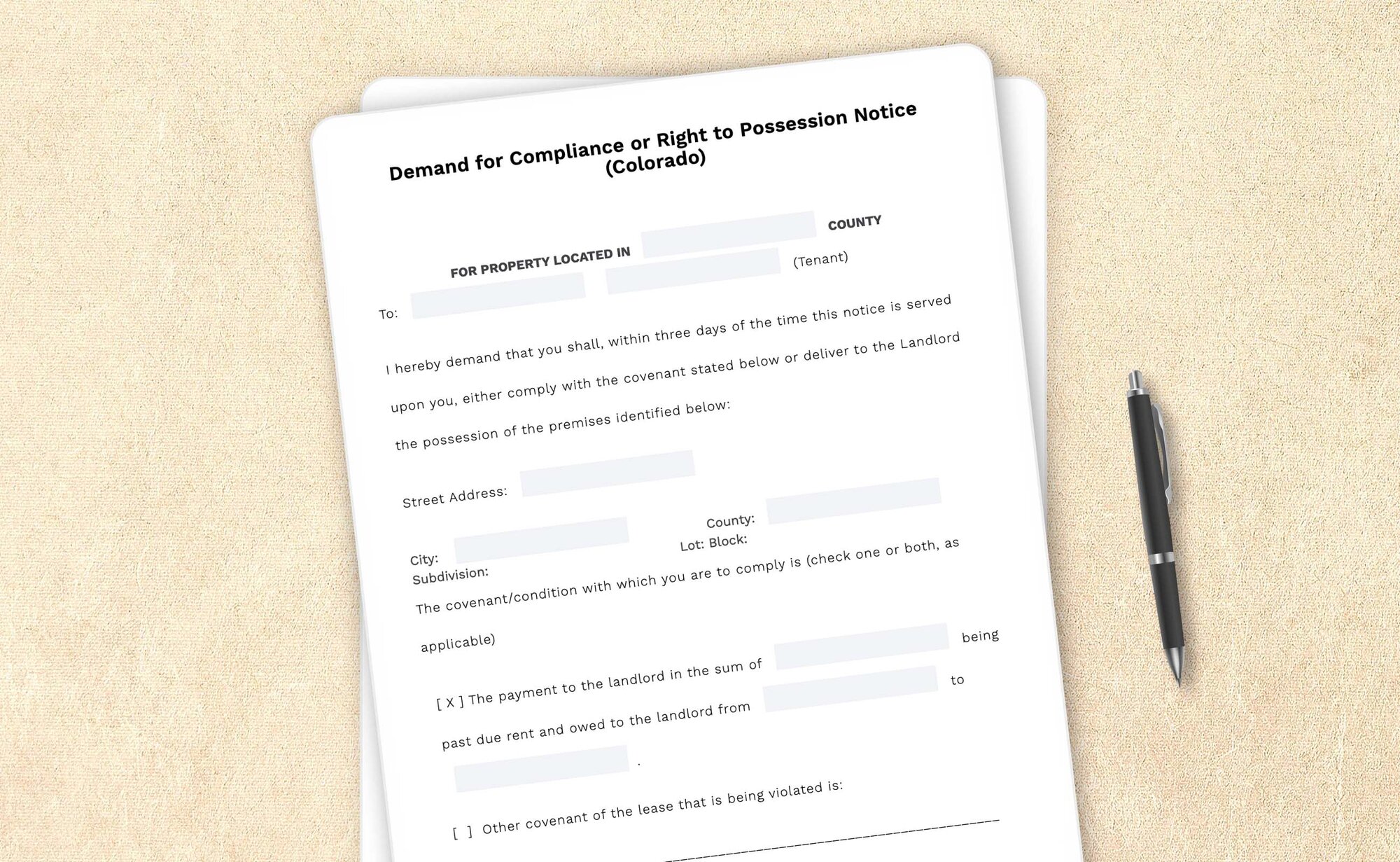 Demand for Compliance or Right to Possession Notice (Colorado) Template