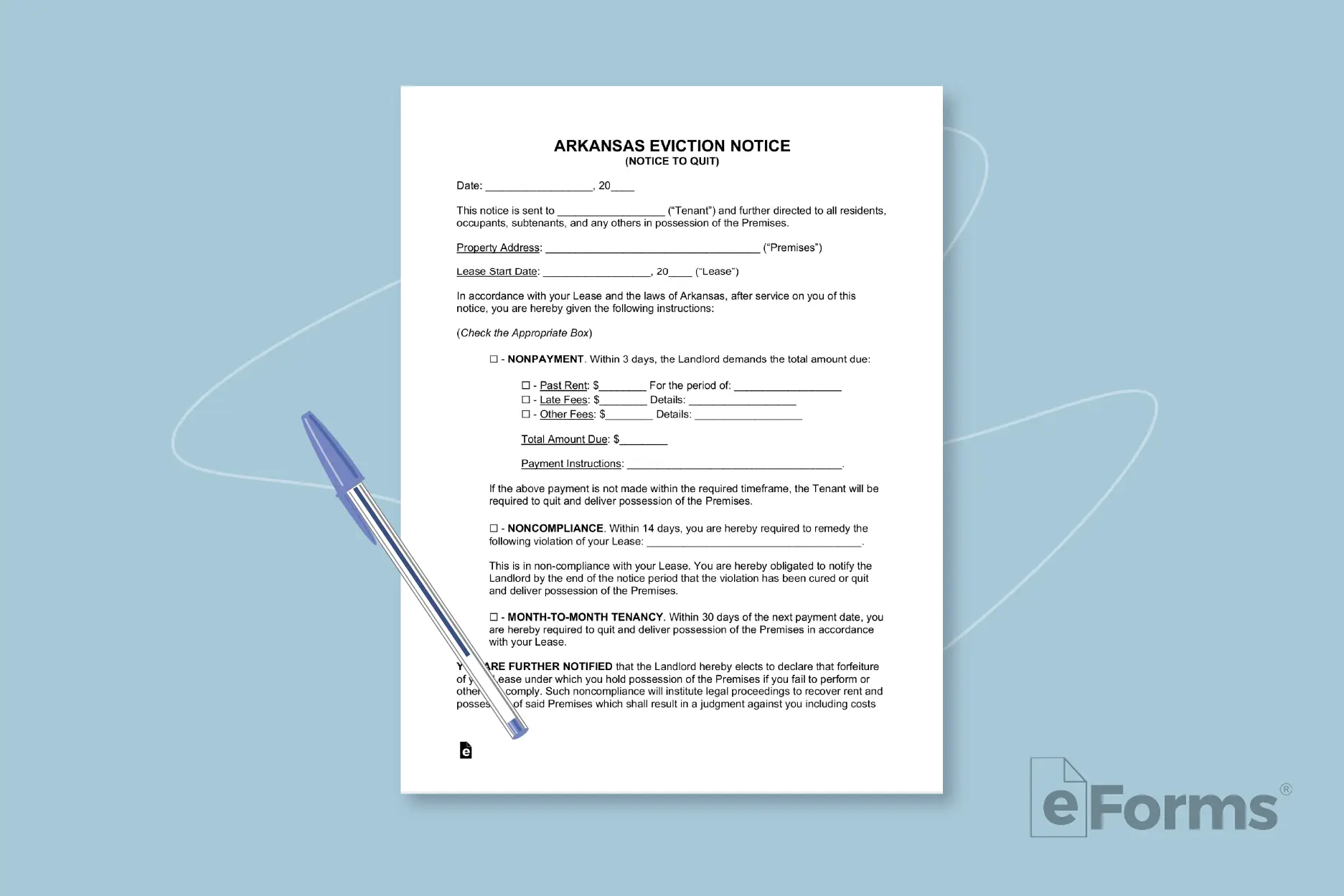 Free Arkansas Eviction Notice Forms (Notice to Quit) Process and Laws