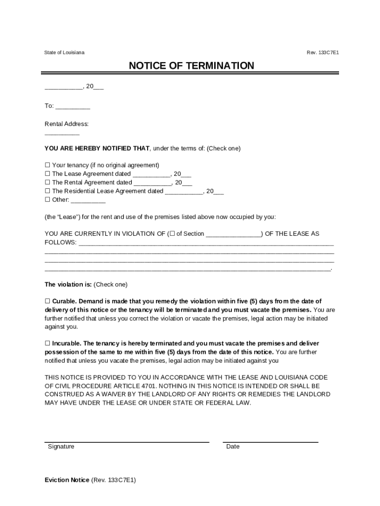 Free Louisiana Eviction Notice Template Of Louisiana Lease Termination