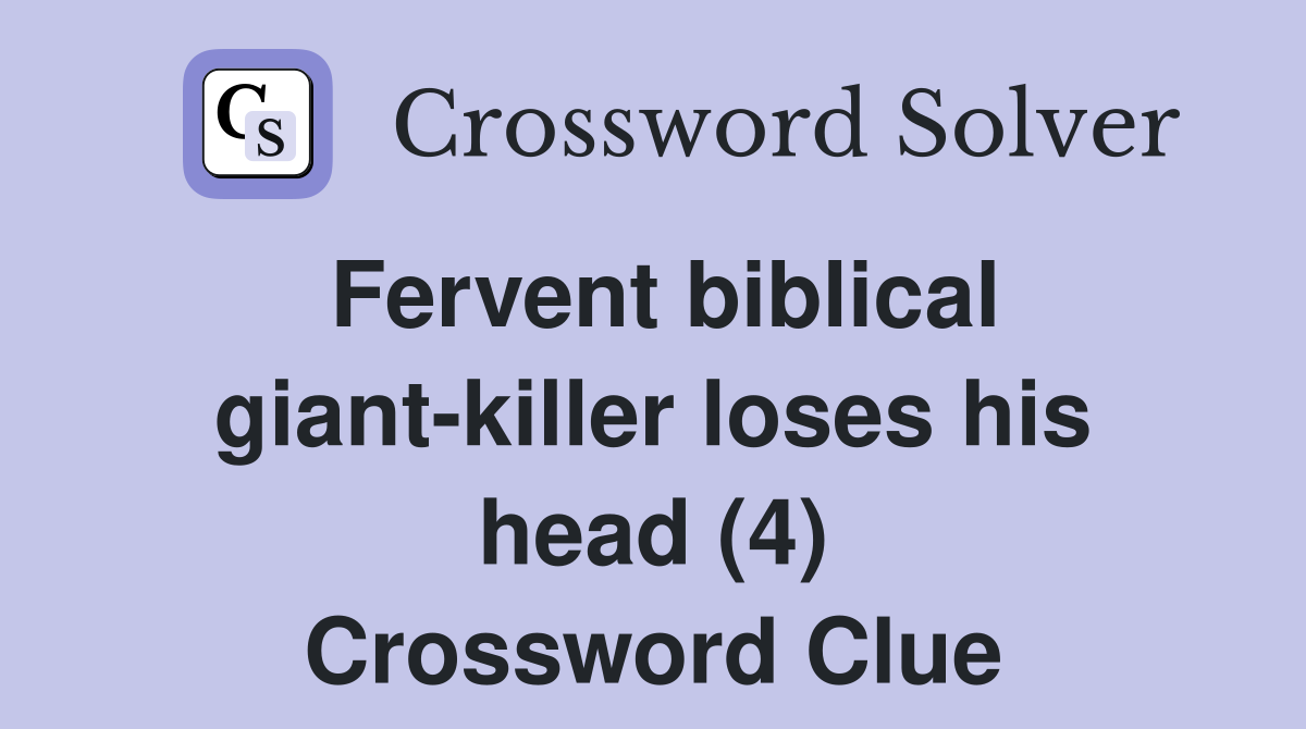 Fervent biblical giant killer loses his head (4) Crossword Clue