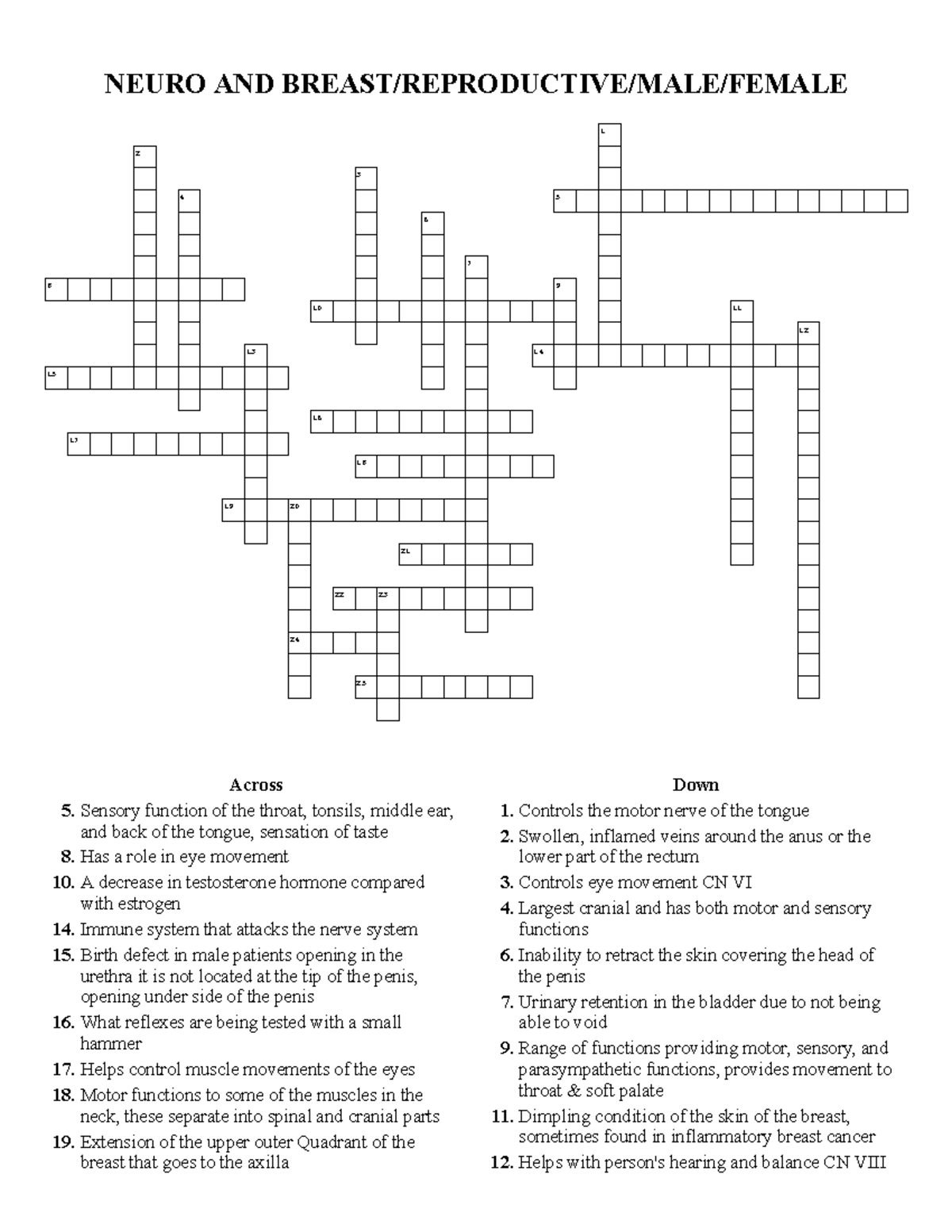 Exam 4 Crossword wrkst NEURO AND BREAST/REPRODUCTIVE/MALE/FEMALE
