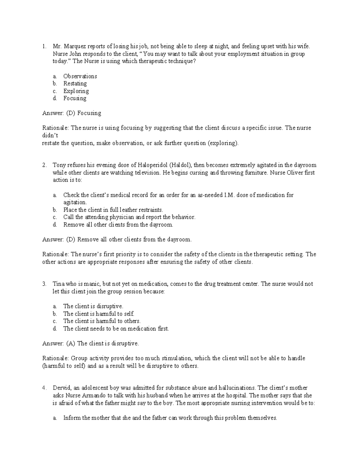 Exam 3b Mental Health Exam 3 Mr Marquez reports of losing his job