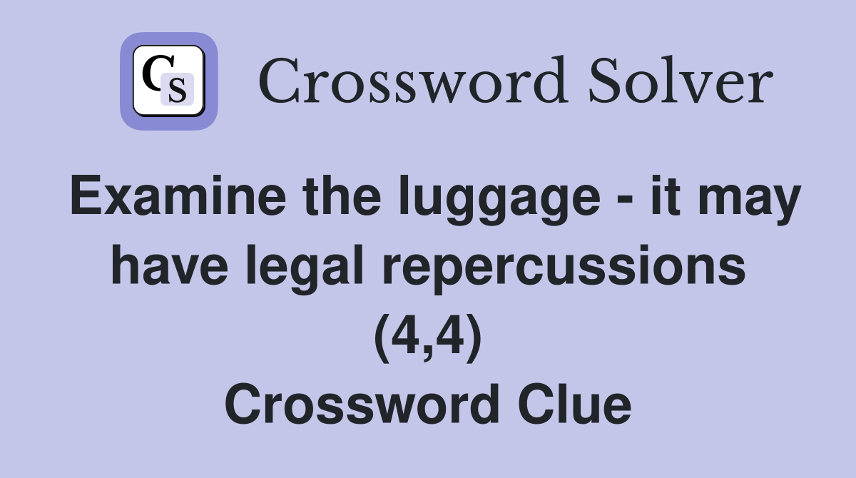 Examine the luggage it may have legal repercussions (4 4) Crossword