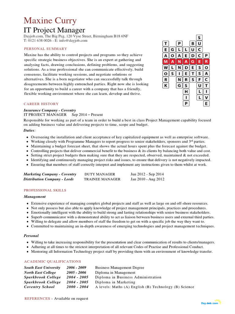 IT Project Manager Crossword Template Example PDF Project