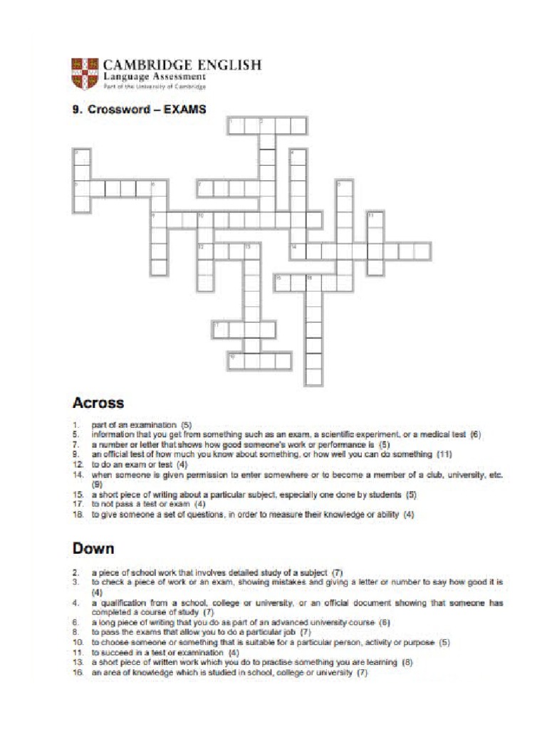 Exams Crossword PDF