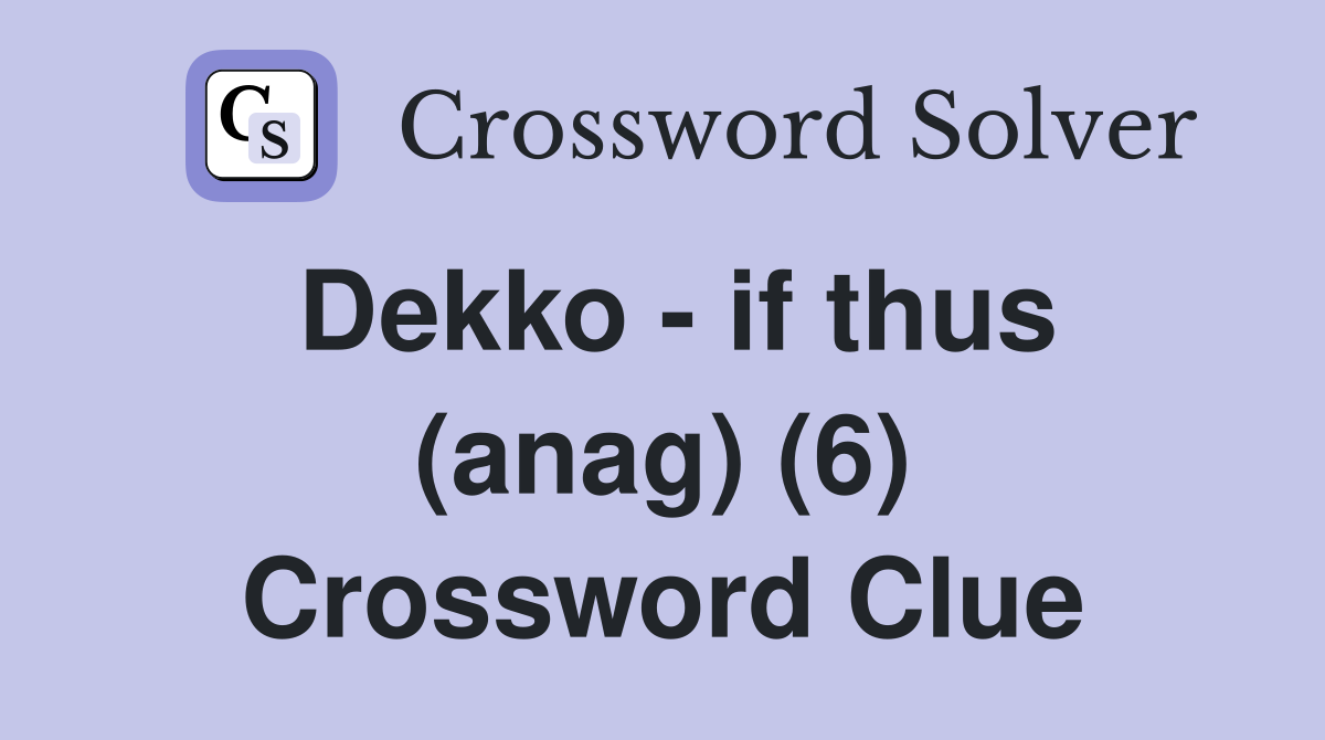 Dekko if thus (anag) (6) Crossword Clue Answers Crossword Solver