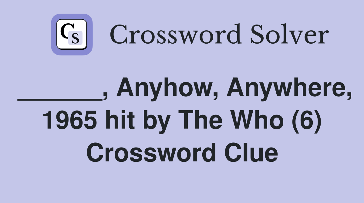 Anyhow Anywhere 1965 hit by The Who (6) Crossword Clue Answers