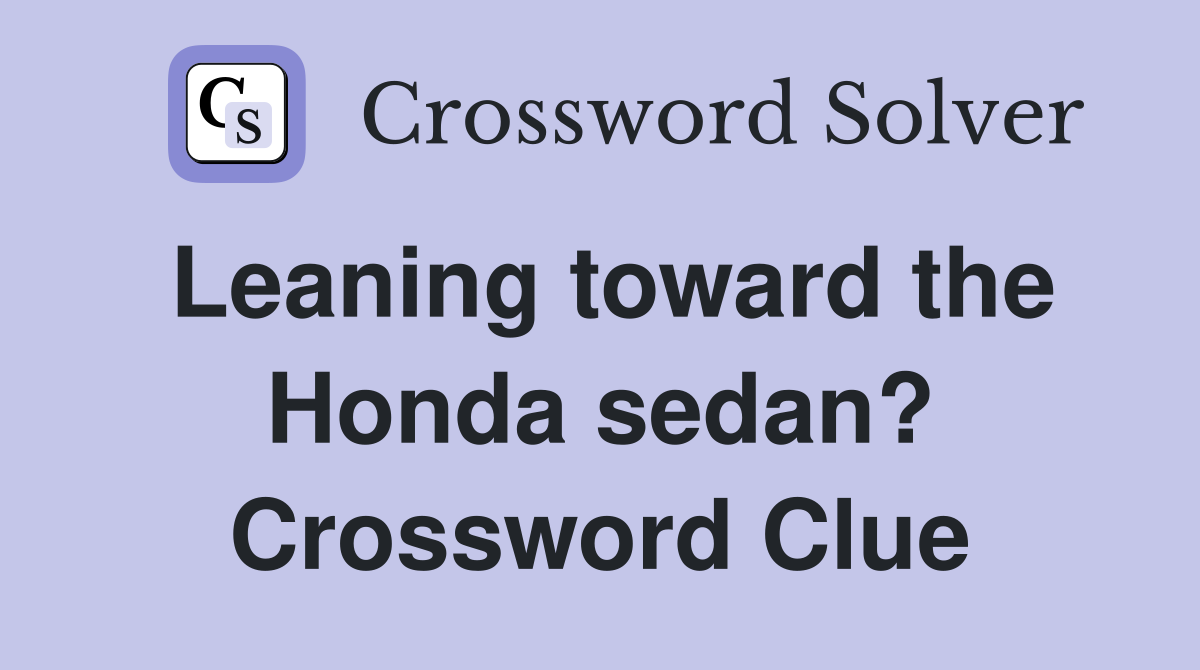 Leaning toward the Honda sedan? Crossword Clue Answers Crossword Solver