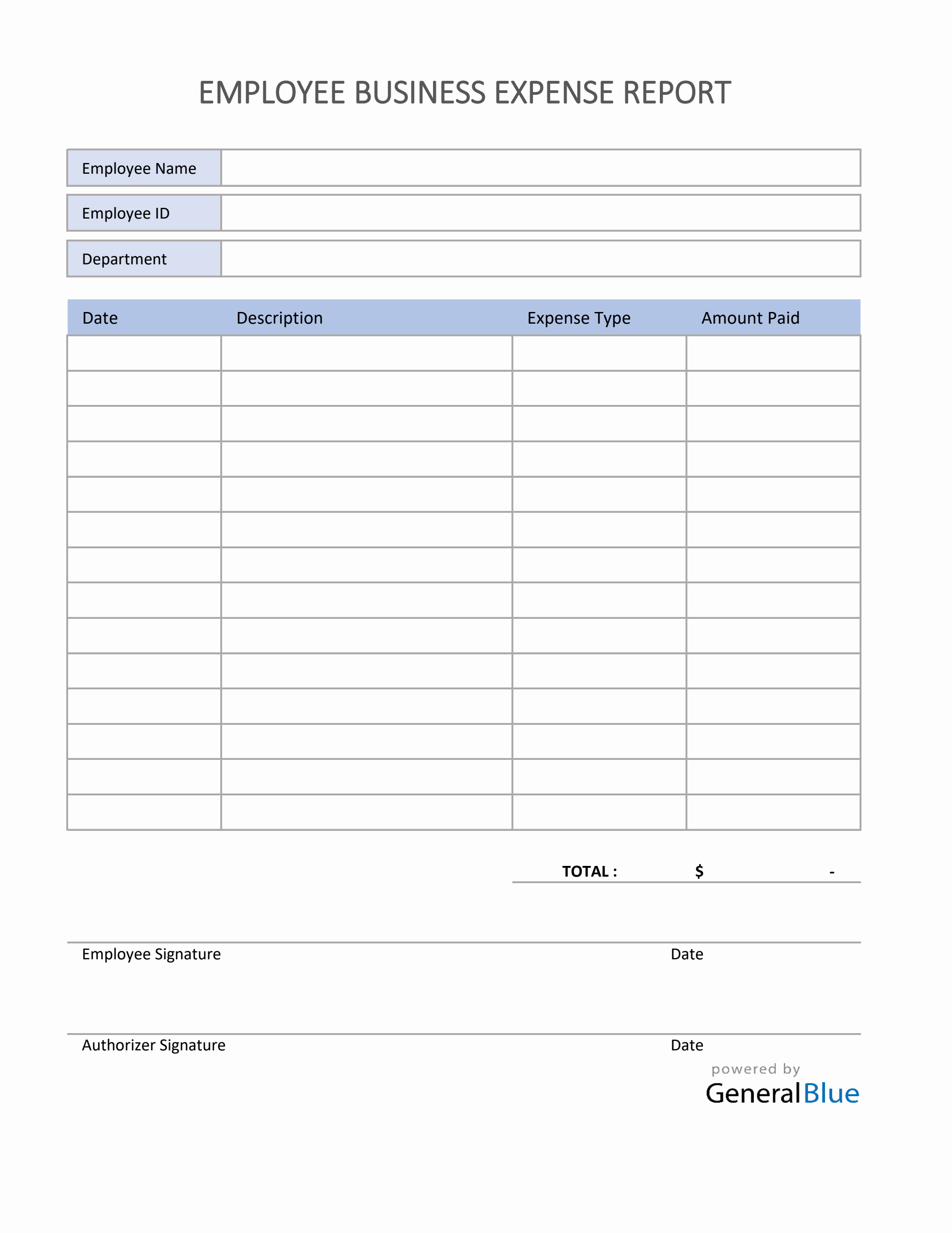 Employee Business Expense Report Template in Excel
