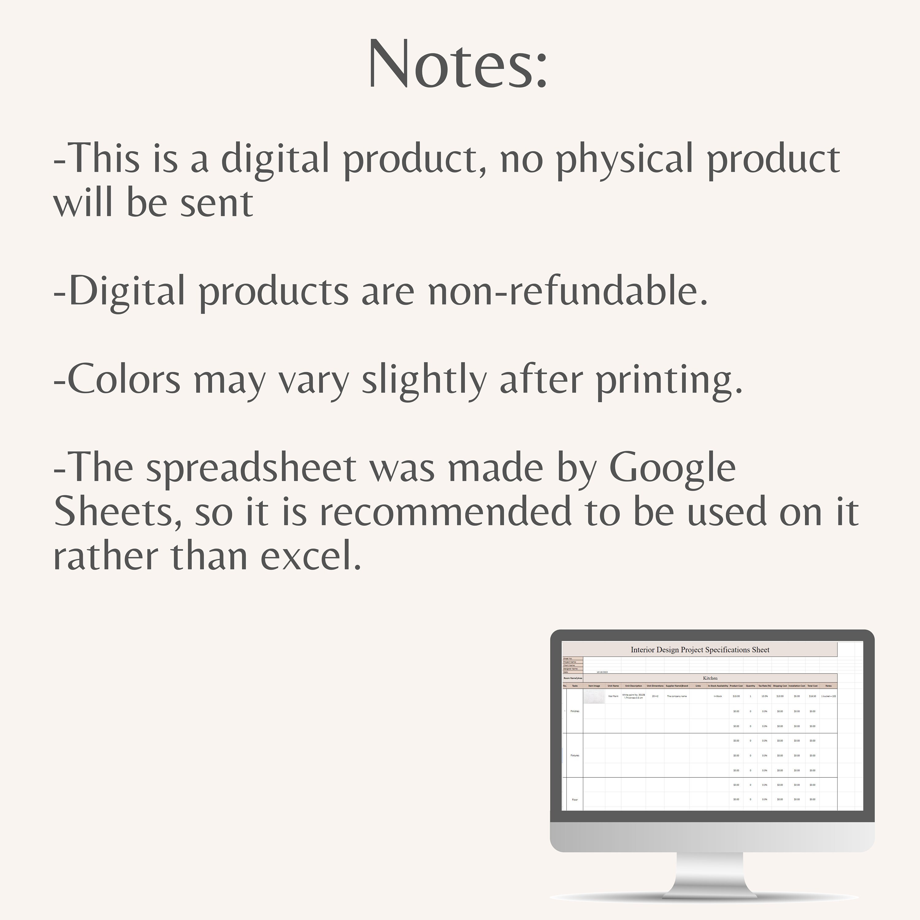 Interior Design Specifications Template Excel Template FF E Etsy UK
