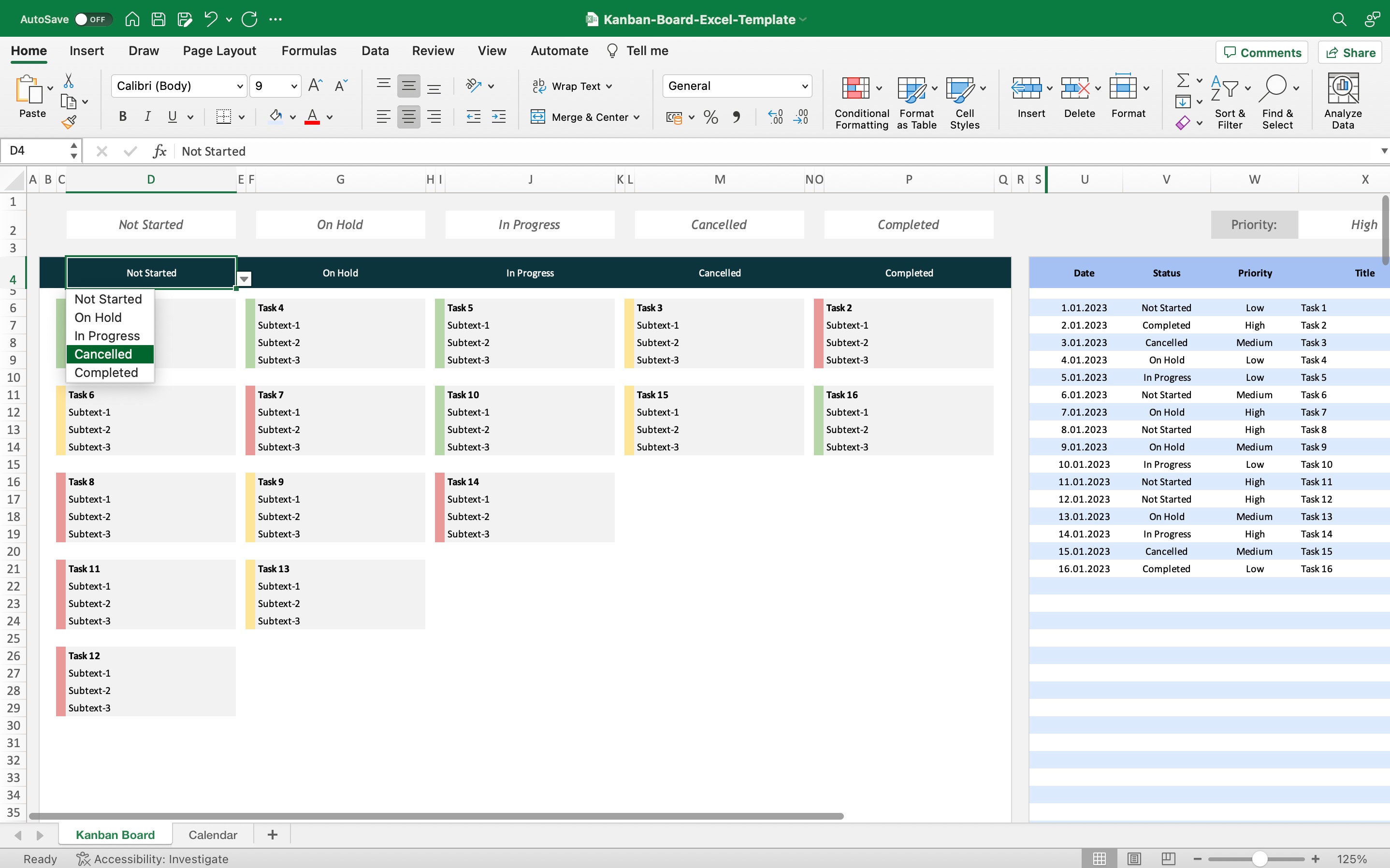 Excel Kanban Board Template