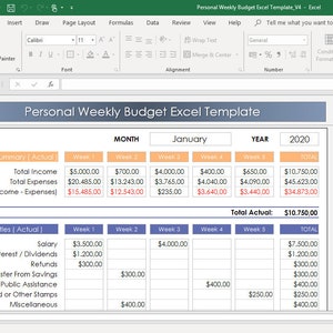 Personal Weekly Budget Excel Template Budget Tracker Weekly Budget