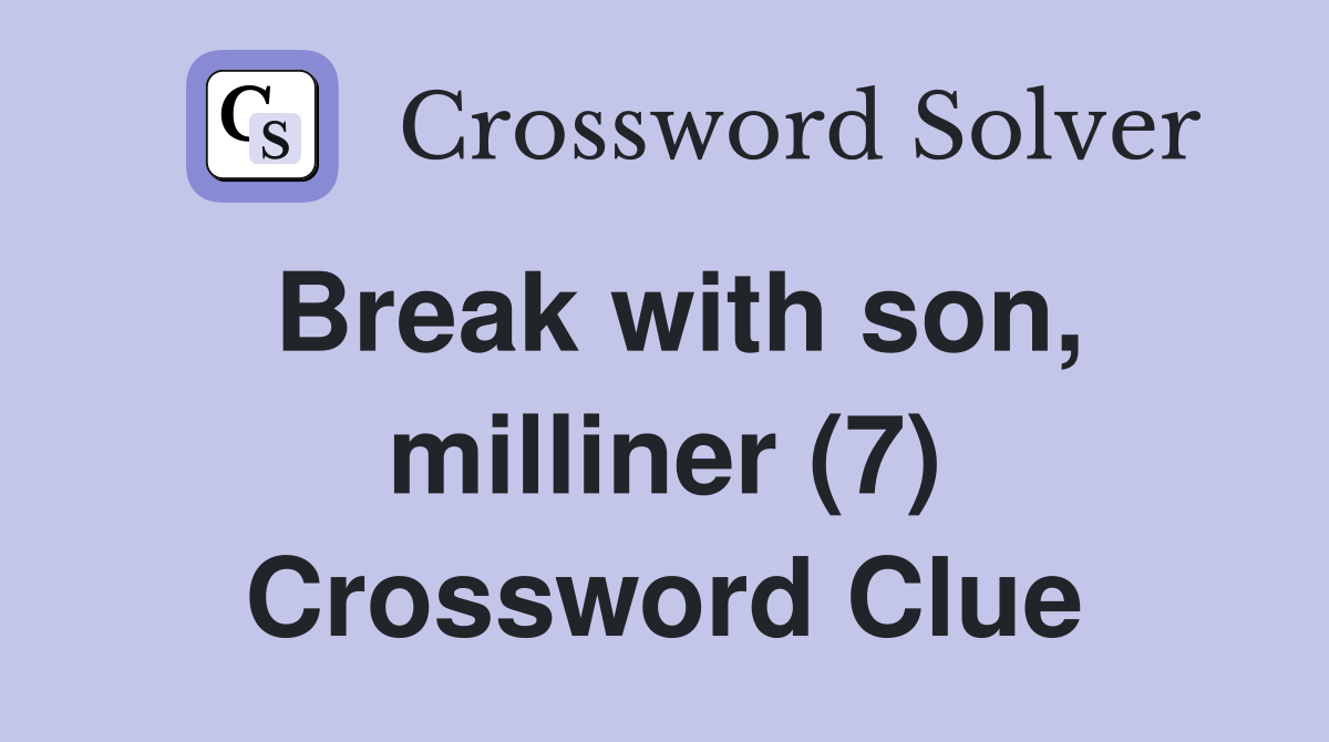 Break with son milliner (7) Crossword Clue Answers Crossword Solver