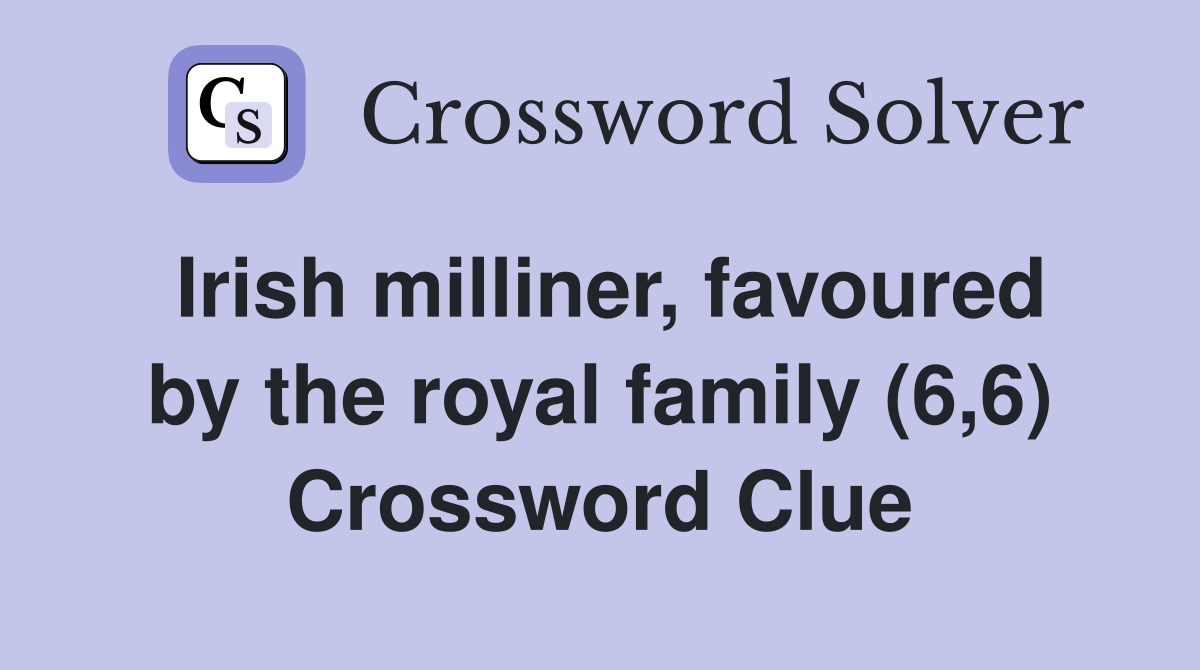 Irish milliner favoured by the royal family (6 6) Crossword Clue