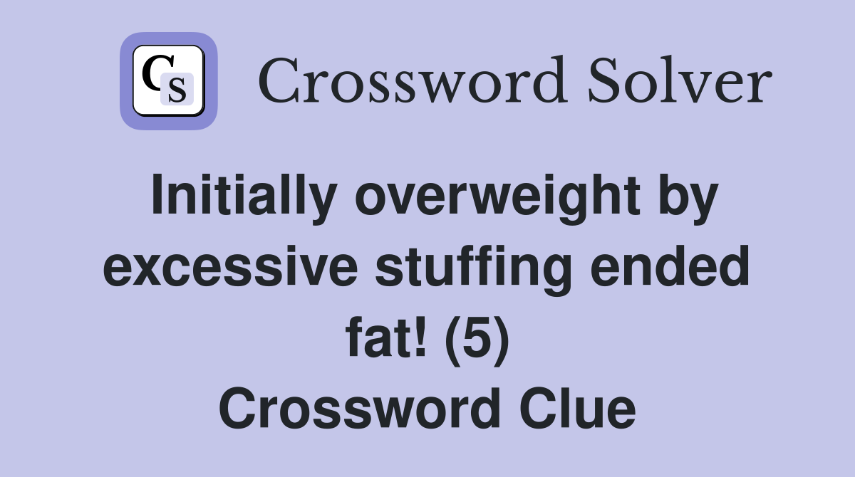 Initially overweight by excessive stuffing ended fat (5) Crossword