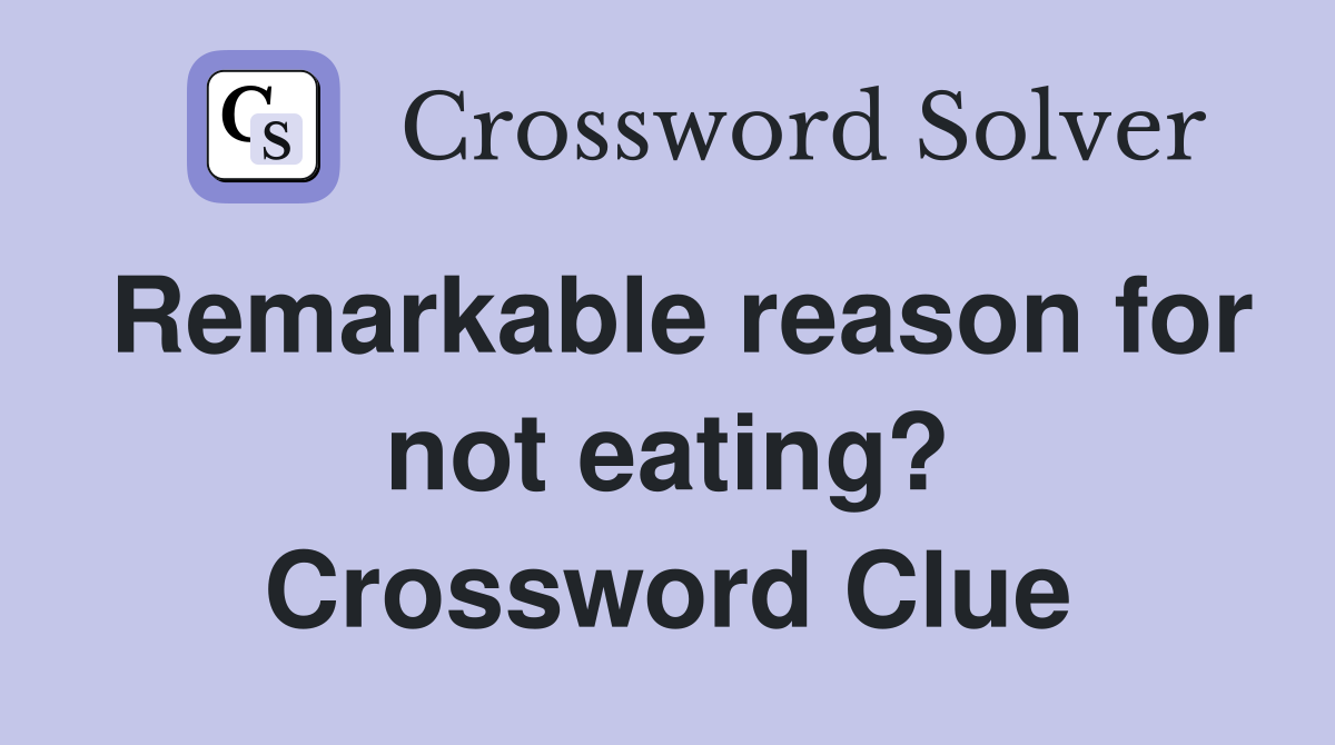 Remarkable reason for not eating? Crossword Clue Answers Crossword