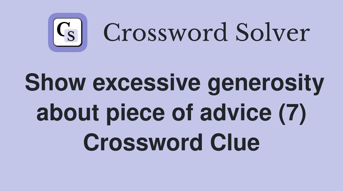 Show excessive generosity about piece of advice (7) Crossword Clue
