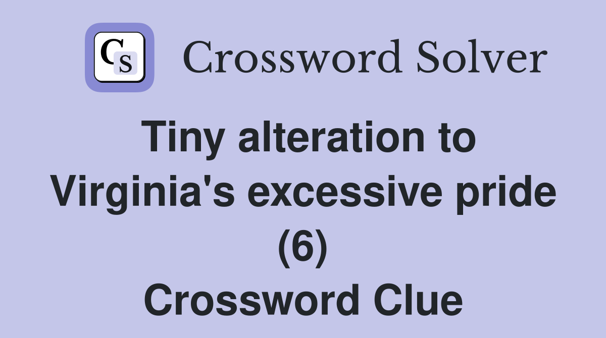 Tiny alteration to Virginia #39 s excessive pride (6) Crossword Clue