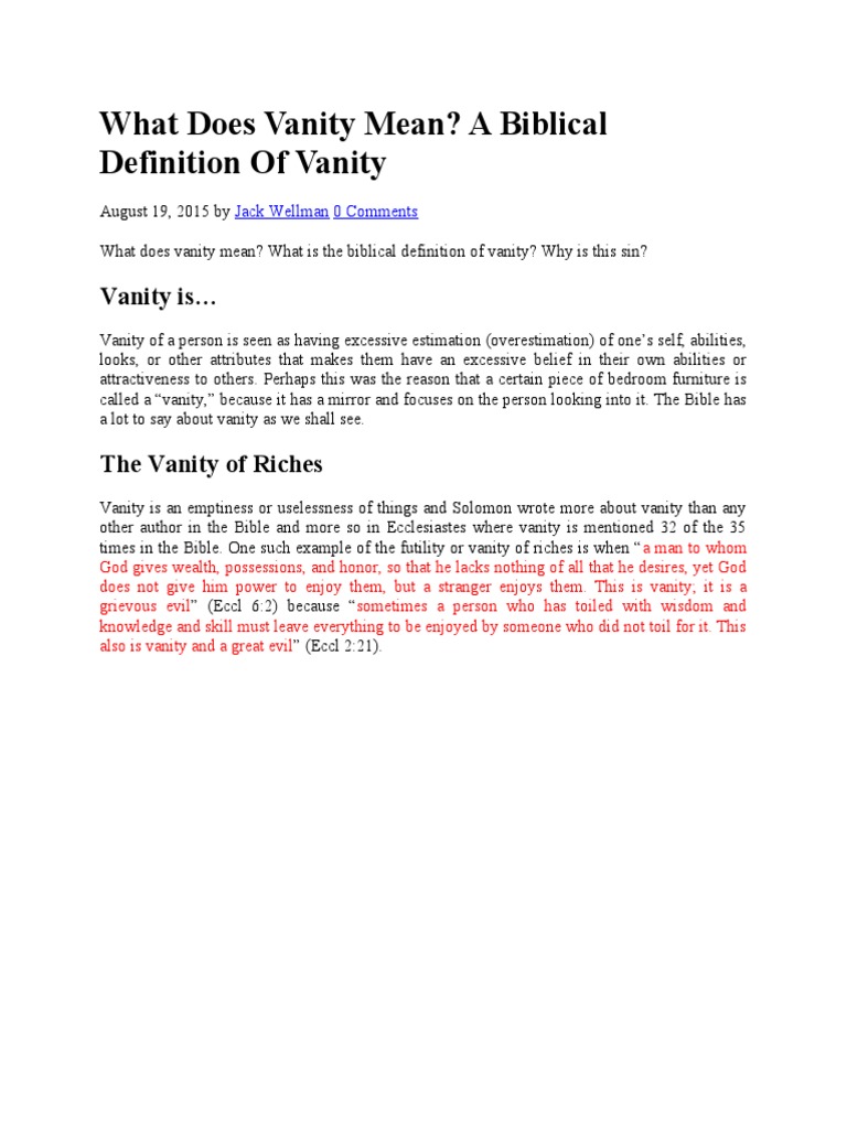 The Biblical Definition of Vanity: Excessive Estimation of One #39 s