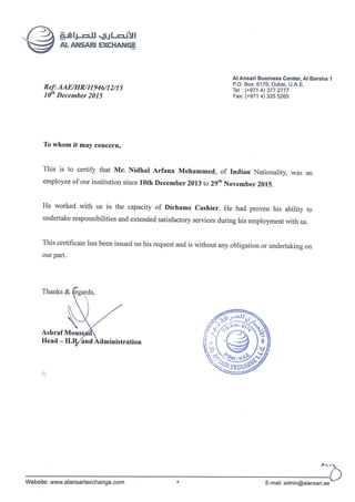 Al Ansari Exchange Certificate PDF
