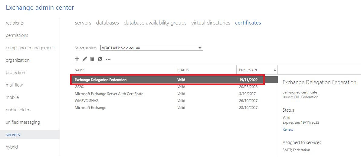 The quot Exchange Delegation Federation quot Certificate expired Microsoft Q A