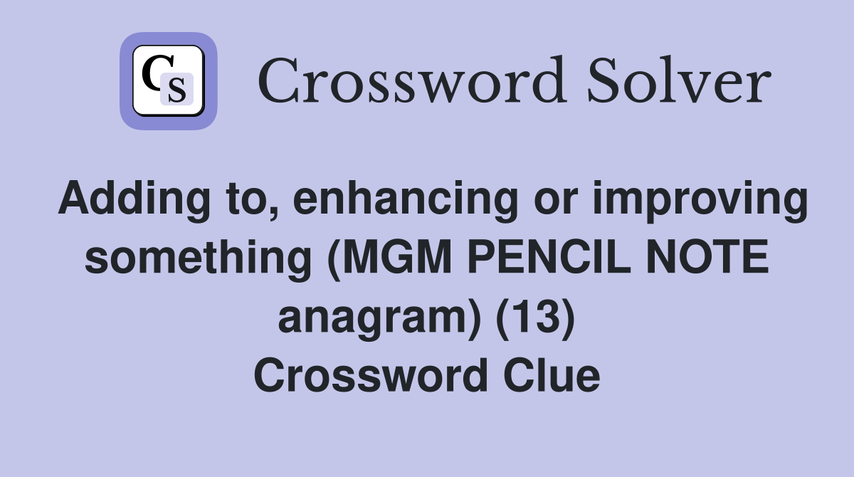 Adding to enhancing or improving something (MGM PENCIL NOTE anagram