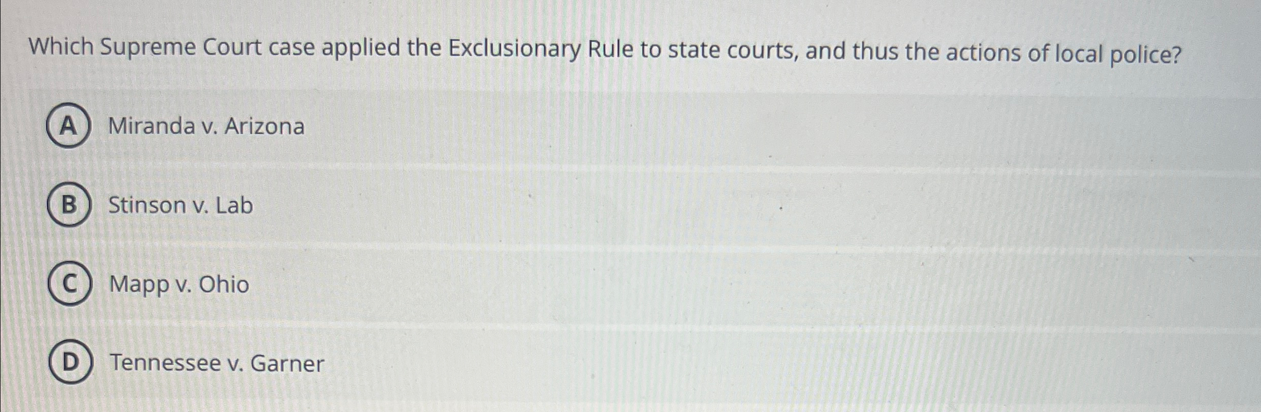 Solved Which Supreme Court case applied the Exclusionary Chegg com
