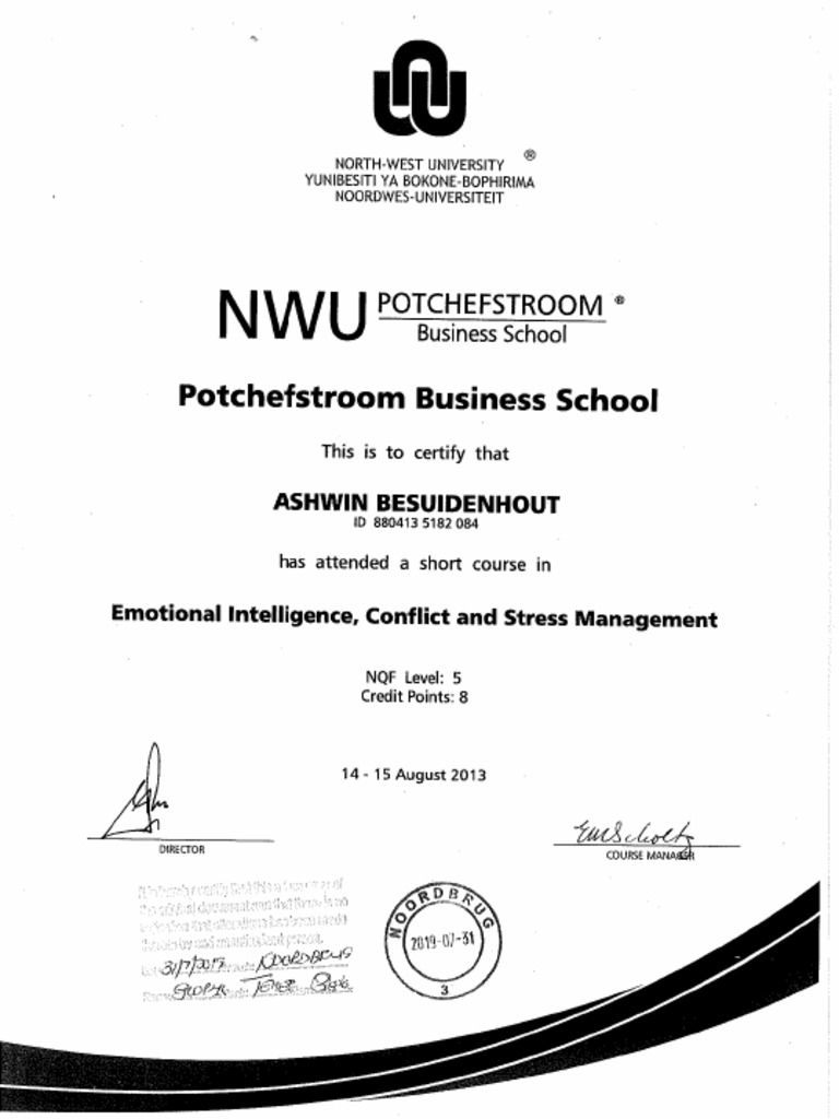 Conflict and Stress Management Certificate PDF