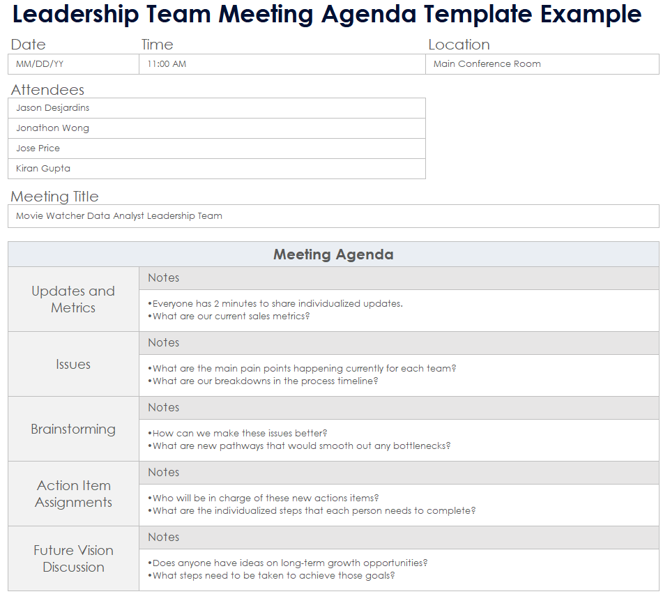 Leadership Team Meeting Template Meeting For Goals