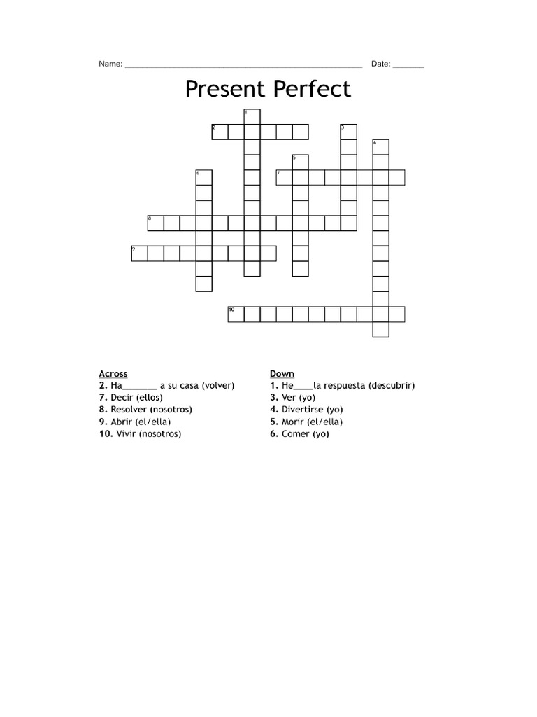 Present Perfect Crossword Exercise PDF