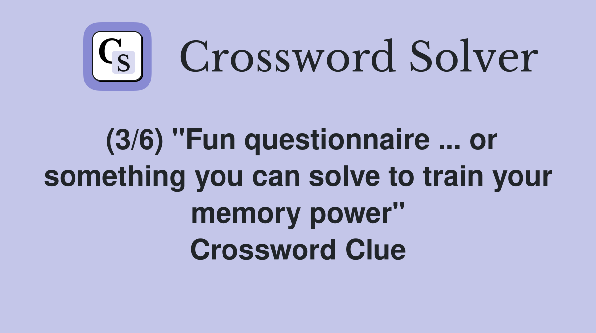 (3/6) quot Fun questionnaire or something you can solve to train your
