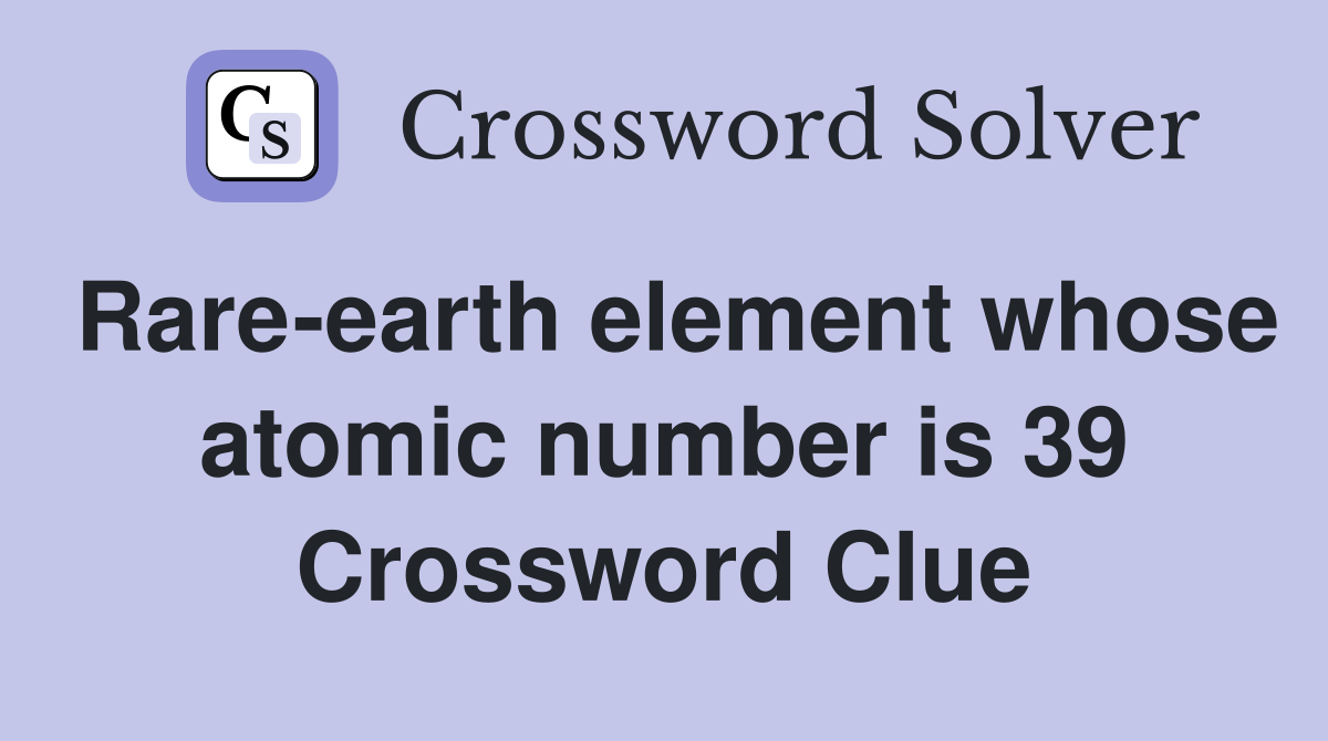 Rare earth element whose atomic number is 39 Crossword Clue Answers
