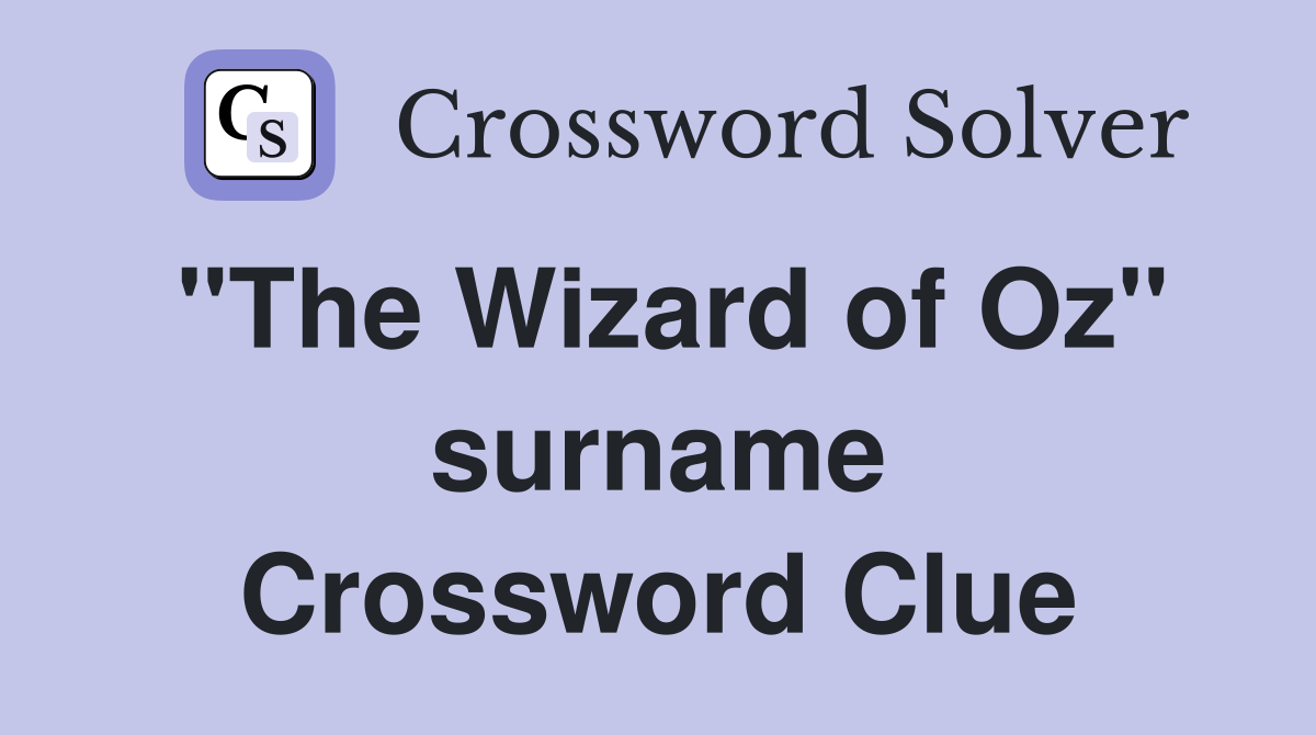quot The Wizard of Oz quot surname Crossword Clue Answers Crossword Solver