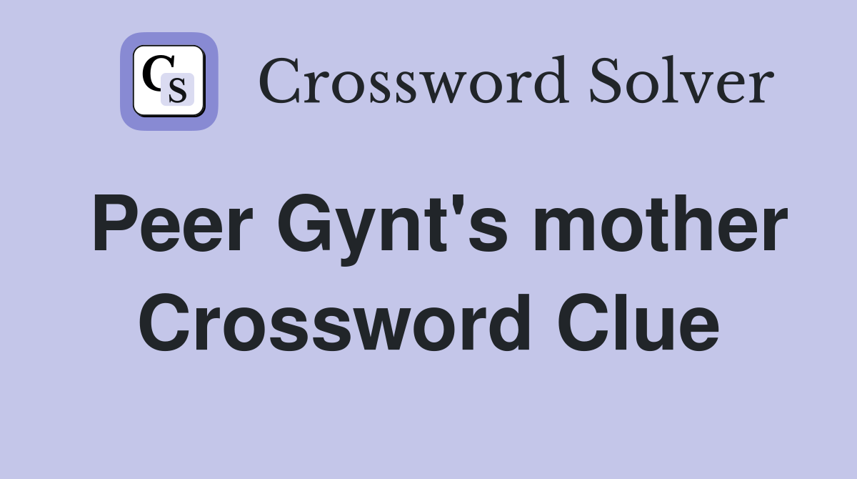 Peer Gynt #39 s mother Crossword Clue Answers Crossword Solver