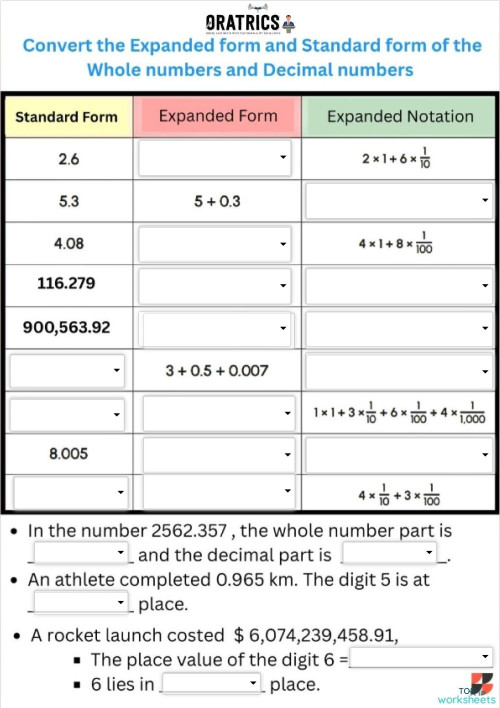 Here are some of the images for Expanded Notation With Decimals Worksheets that we found in our website database.