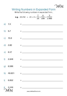 Decimal Place Value Expanded Notation and Expanded Form Worksheets