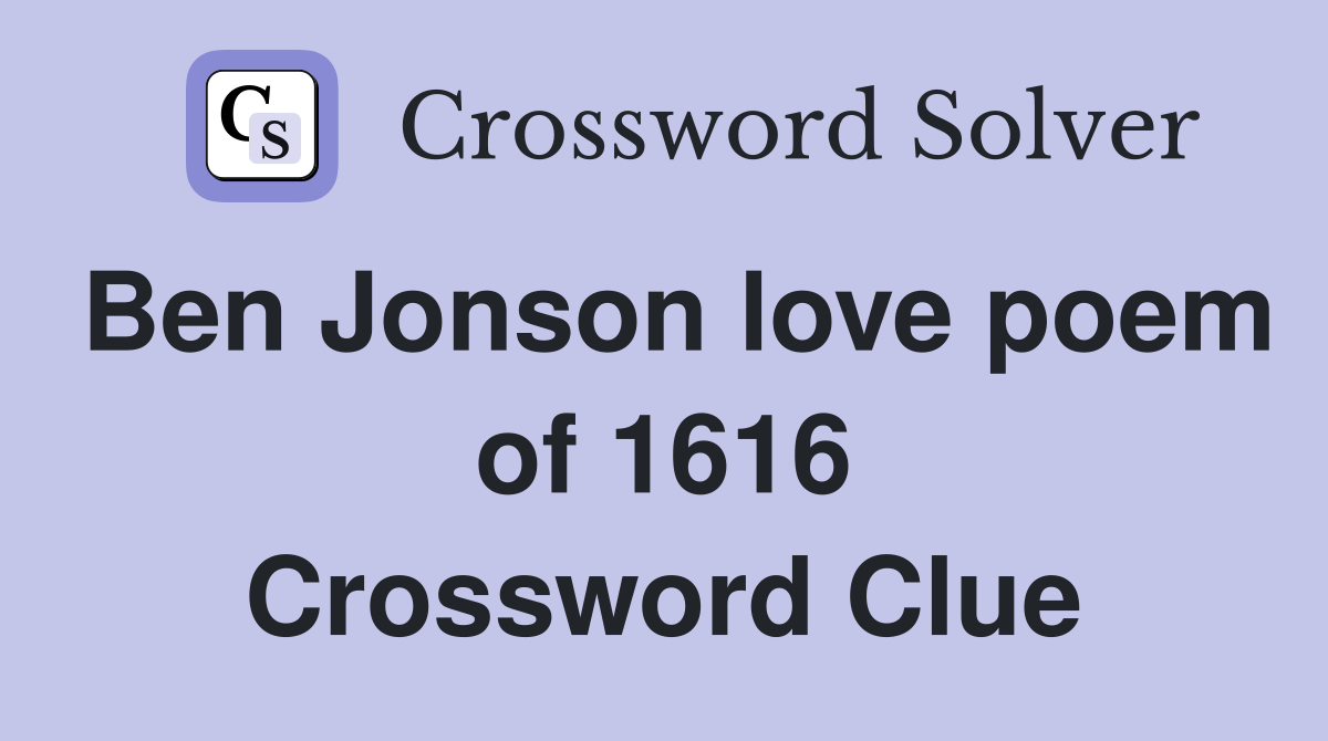 Ben Jonson love poem of 1616 Crossword Clue Answers Crossword Solver