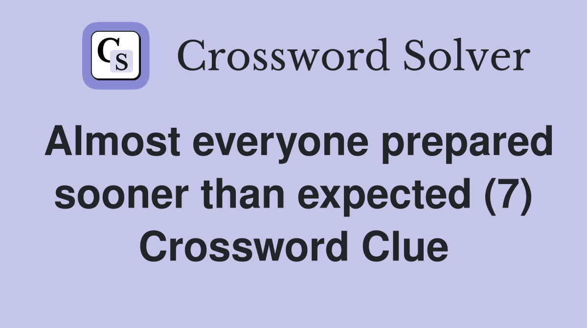 Almost everyone prepared sooner than expected (7) Crossword Clue