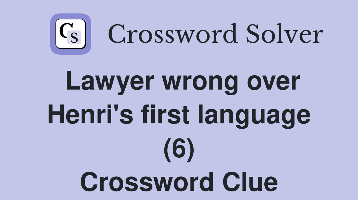 Lawyer wrong over Henri #39 s first language (6) Crossword Clue Answers