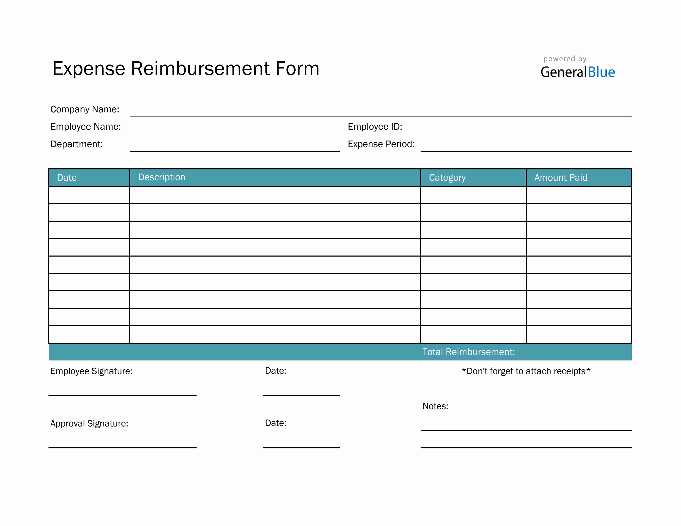 Excel Template For Expense Reimbursement Form (With Receipts)