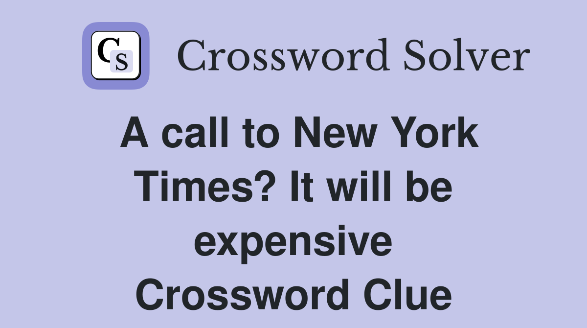 A call to New York Times? It will be expensive Crossword Clue Answers