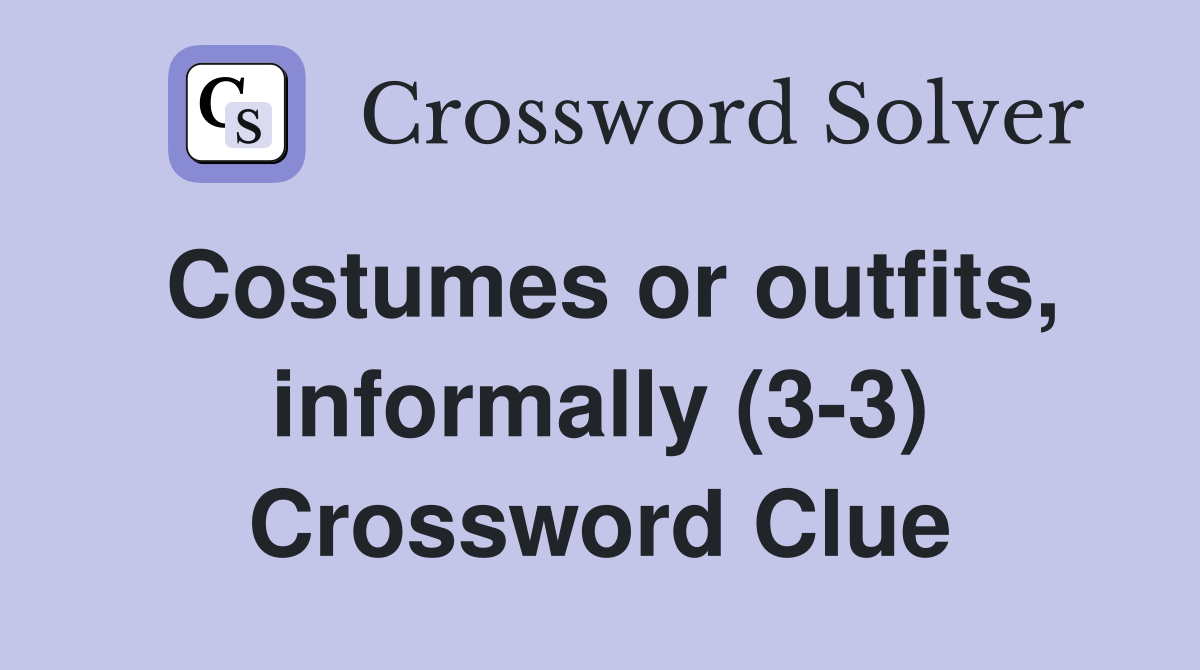 Costumes or outfits informally (3 3) Crossword Clue Answers