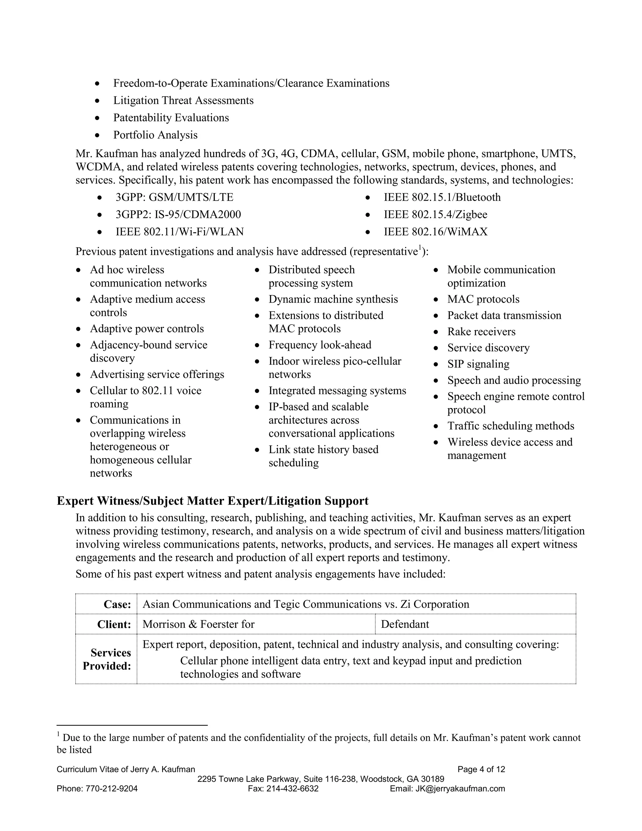 Expert Witness Patent Analyst Wireless Technologies PDF