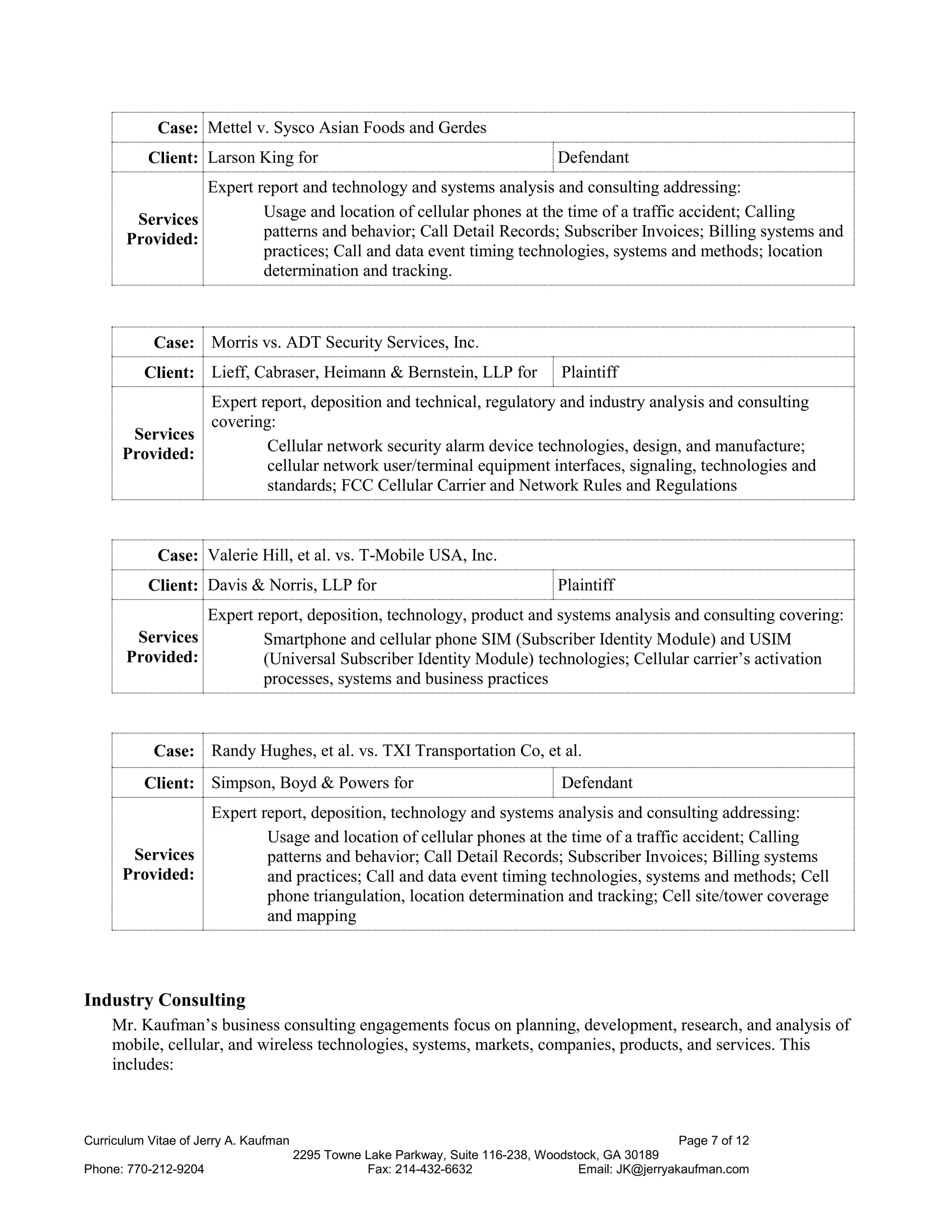 Curriculum Vitae Security Consultant Expert Witness / curriculum