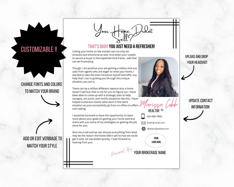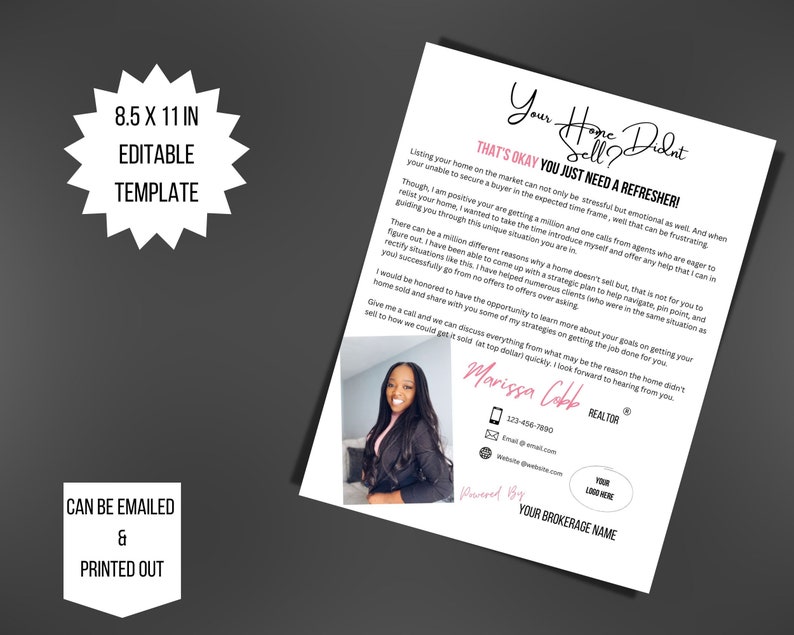 Expired Listing Letter Template Real Estate Modern Classy Elegant Etsy