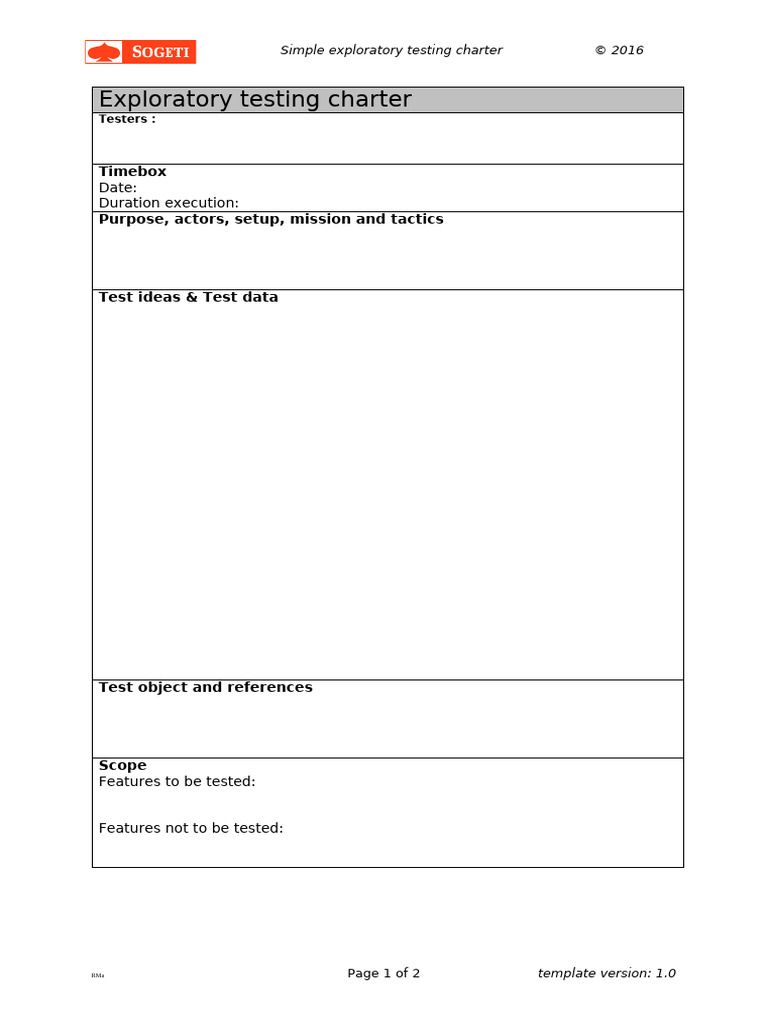 Qa exploratory test charter template
