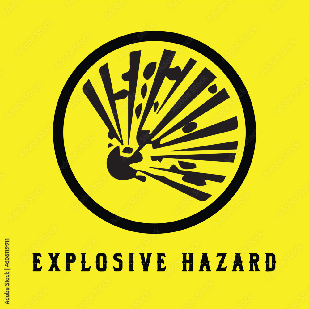 Explosive materials sign Explosives warning sign Yellow triangle sign