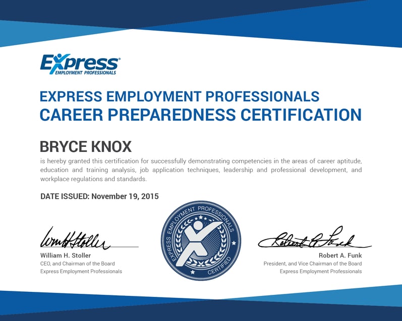 Here are some of the images for Express Employment Professionals Career Preparedness Certification that we found in our website database.