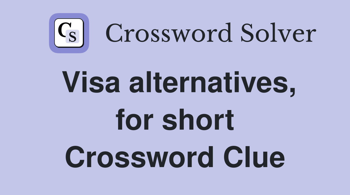Visa alternatives for short Crossword Clue Answers Crossword Solver
